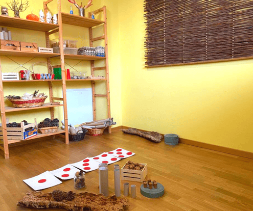 Nella stanza della natura, i bambini e le bambine posso immergersi in giochi e attività pensate per favorire l’uso e la conoscenza di materiali unicamente naturali e destrutturati